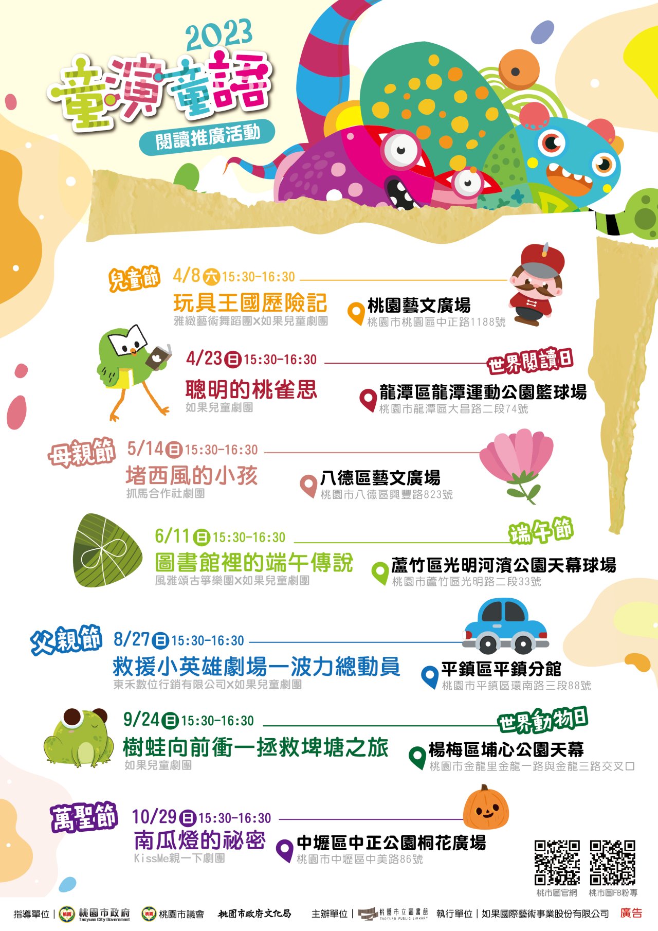 桃園市立圖書館辦理「2023年童演童語嬰幼兒閱讀推廣活動」,鼓勵師生踴躍參加,說明如下: