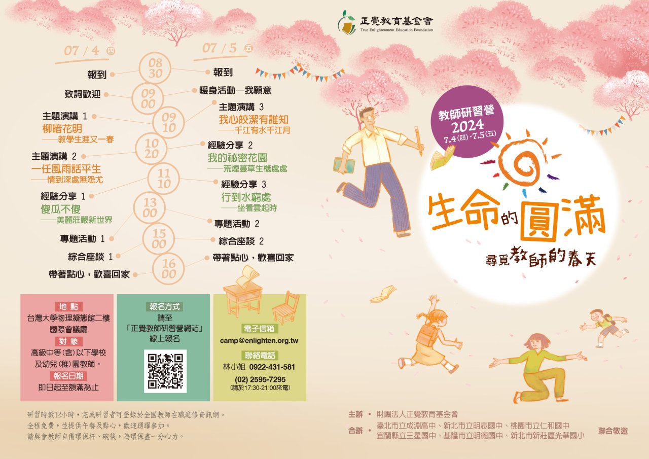 | (五) | 報名:即日起至額滿為止,請上正覺教師研習營網站報名(https://www.teachercamp.enlighten.org.tw) 。 |