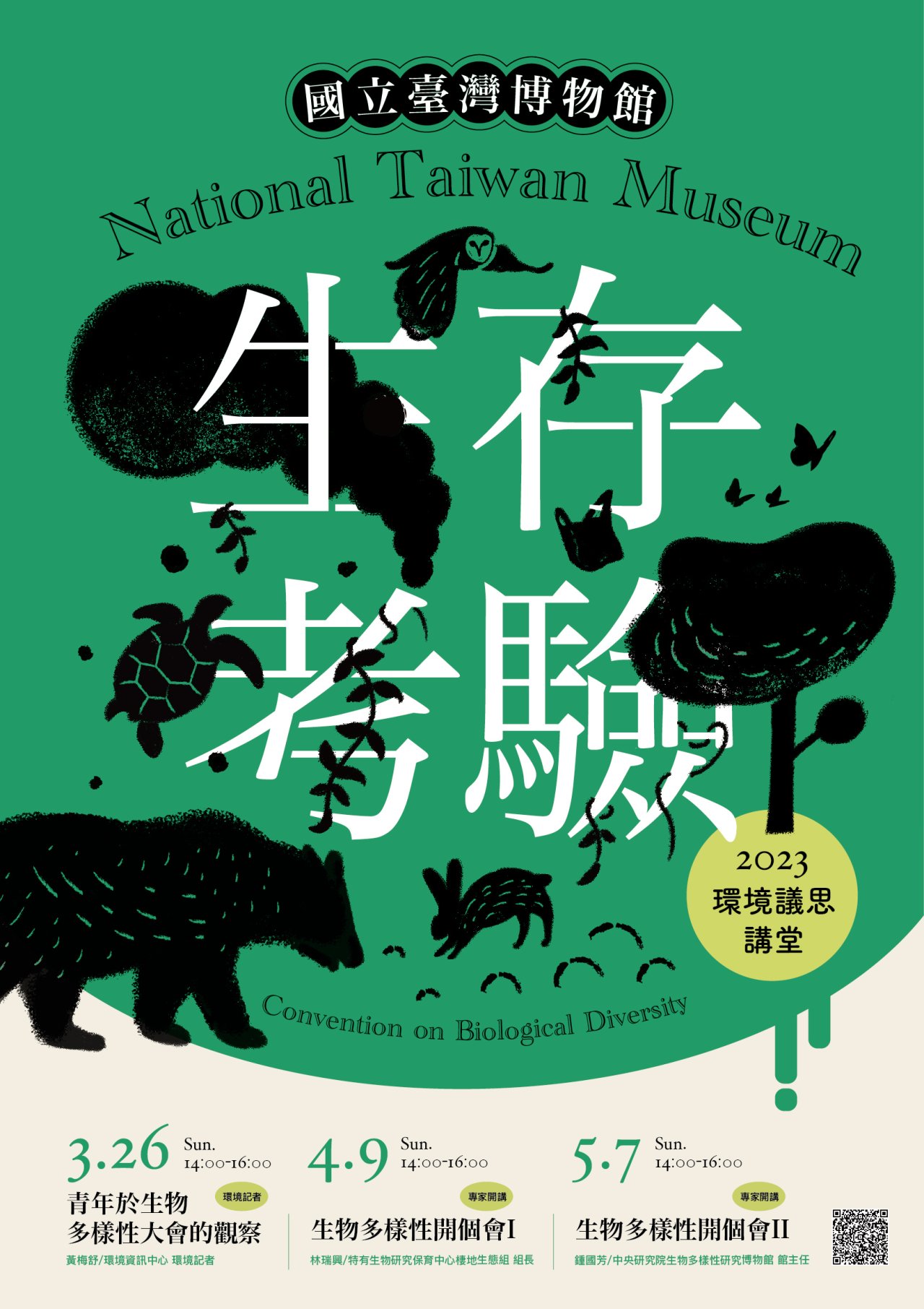 | 3、 | 活動說明:以「生存考驗」為題,借重曾參與聯合國生物多樣性大會的專家學者開講,和大眾分享交流相關經驗及臺灣應如何因應的看法。 |