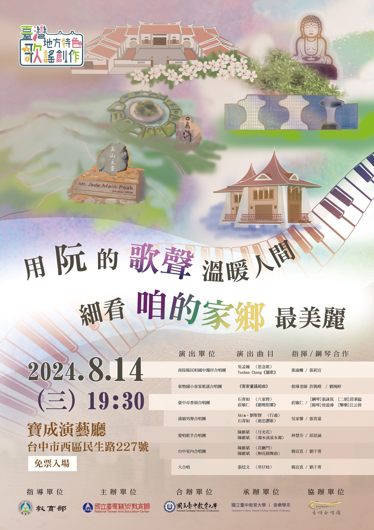 壹、主旨:國立臺灣藝術教育館第3屆「臺灣地方特色歌謠創作 比賽」中區推廣音樂會(含漢詩吟唱)活動。