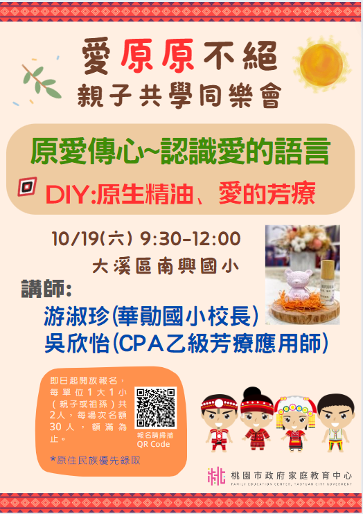 二、 檢附活動海報1份,請惠予協助宣傳並鼓勵原住民家庭踴躍參與。