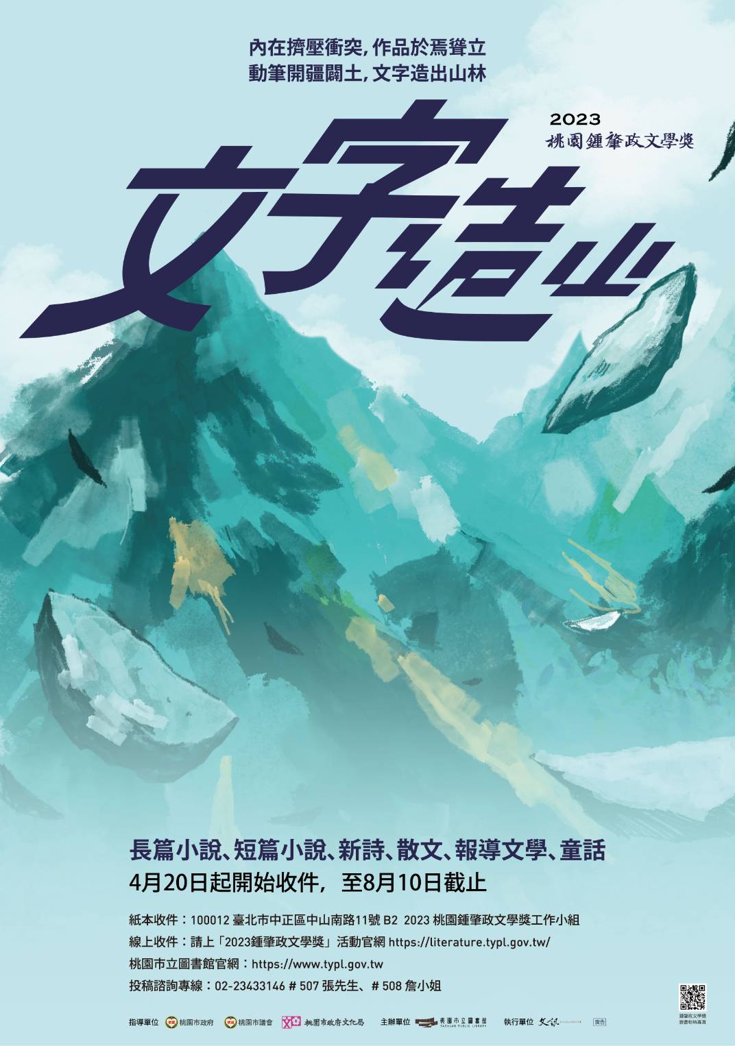 一、為鼓勵文學創作,「2023桃園鍾肇政文學獎」徵件已開始,投稿資格不限國籍、不限題材,徵文時間至8月10日截止,開放紙本或線上徵件。