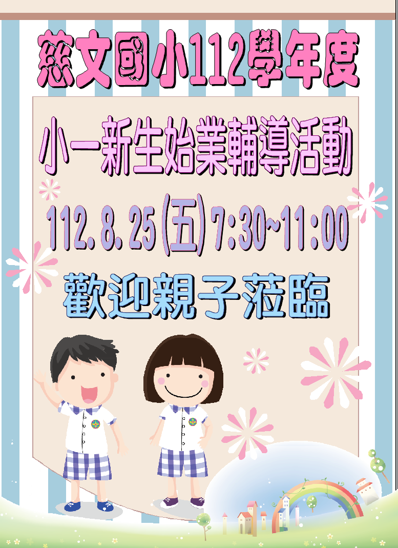 【小一新生始業式】訂於8/25(五)7:30~11:00舉行,歡迎親子蒞臨!