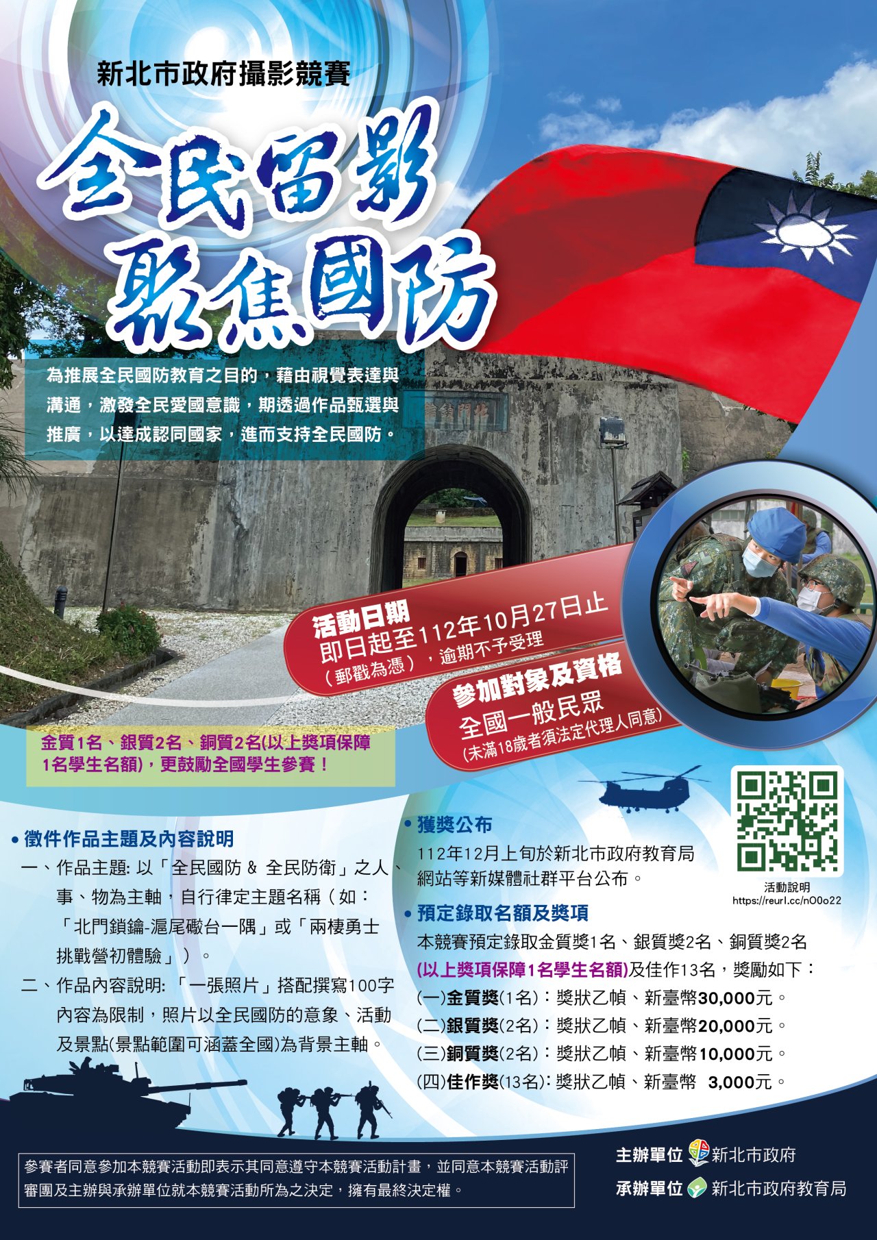 壹、主旨:新北市政府《全民留影‧聚焦國防》攝影競賽活動, 鼓勵參與。