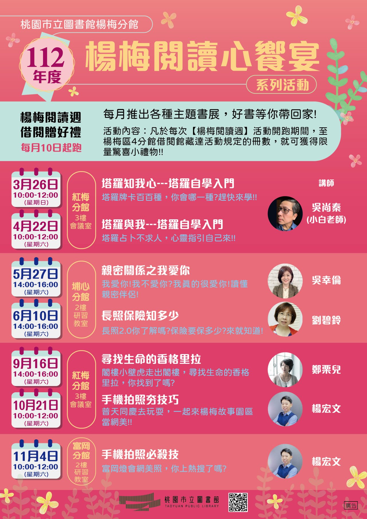 桃園市立圖書館辦理楊梅區閱讀推廣活動,說明如下:
