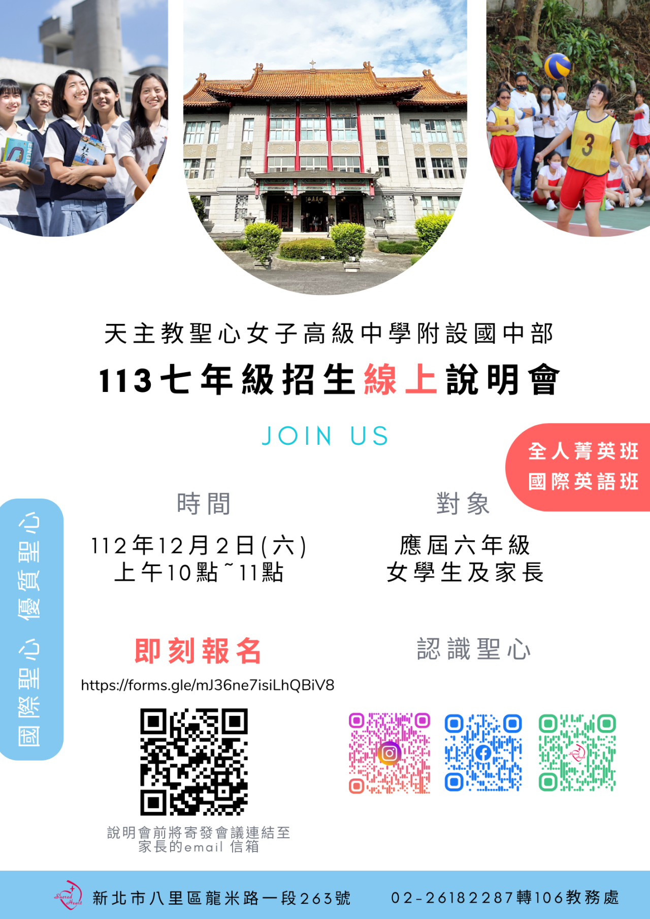 (二) 聖心女中首頁http://www.shgsh.ntpc.edu.tw —最新消息--113七年級招生線上說明會
