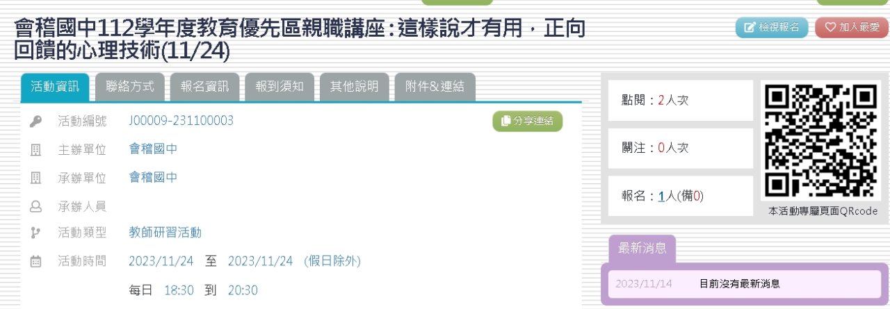 | (一) 時間:112年11月24日(星期五)晚上18:30~20:30 。(二) 地點:會稽國中 三樓會議室。 |