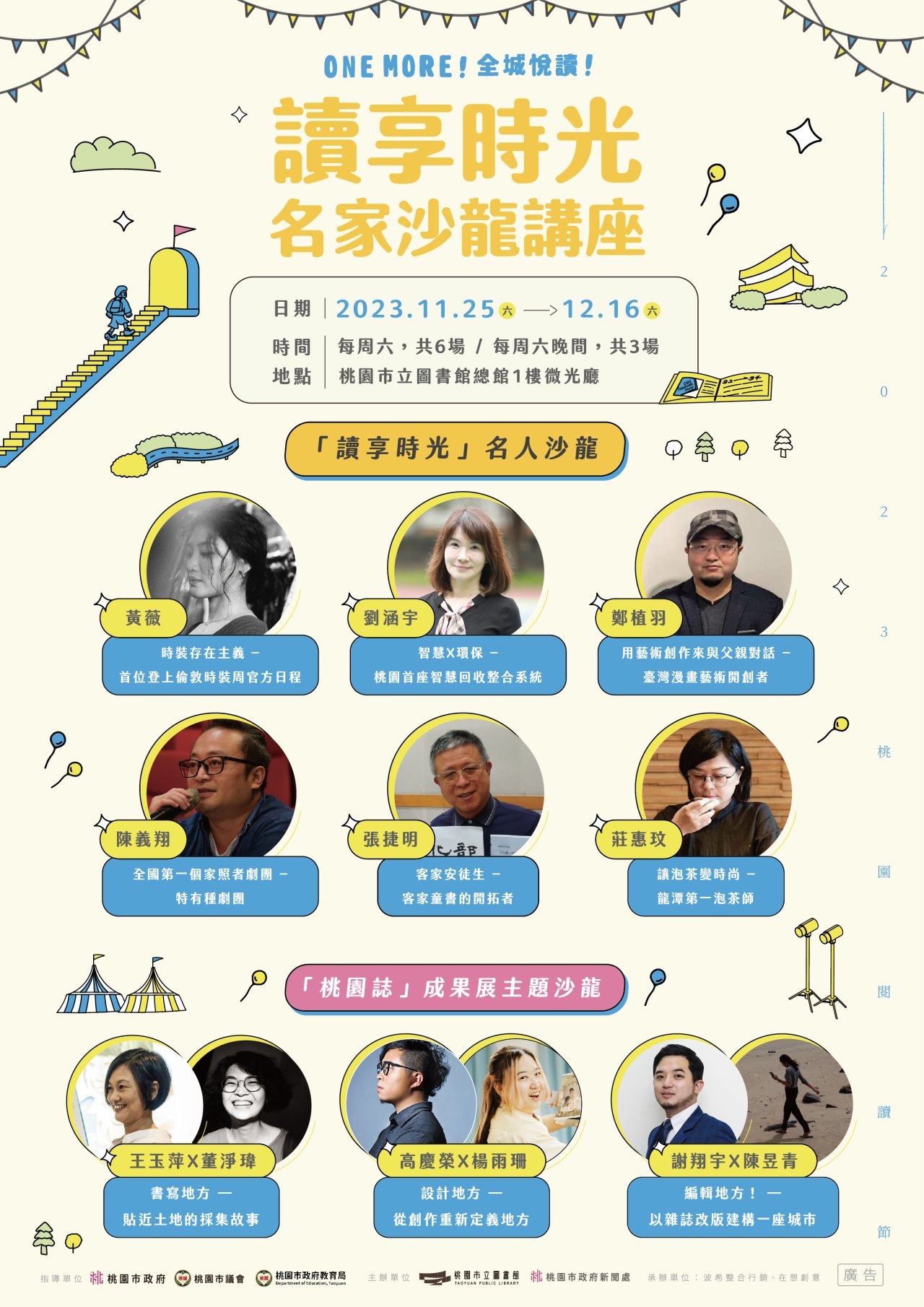 桃園市立圖書館辦理2023桃園閱讀節系列活動之一「讀享時光」名人沙龍講座說明: