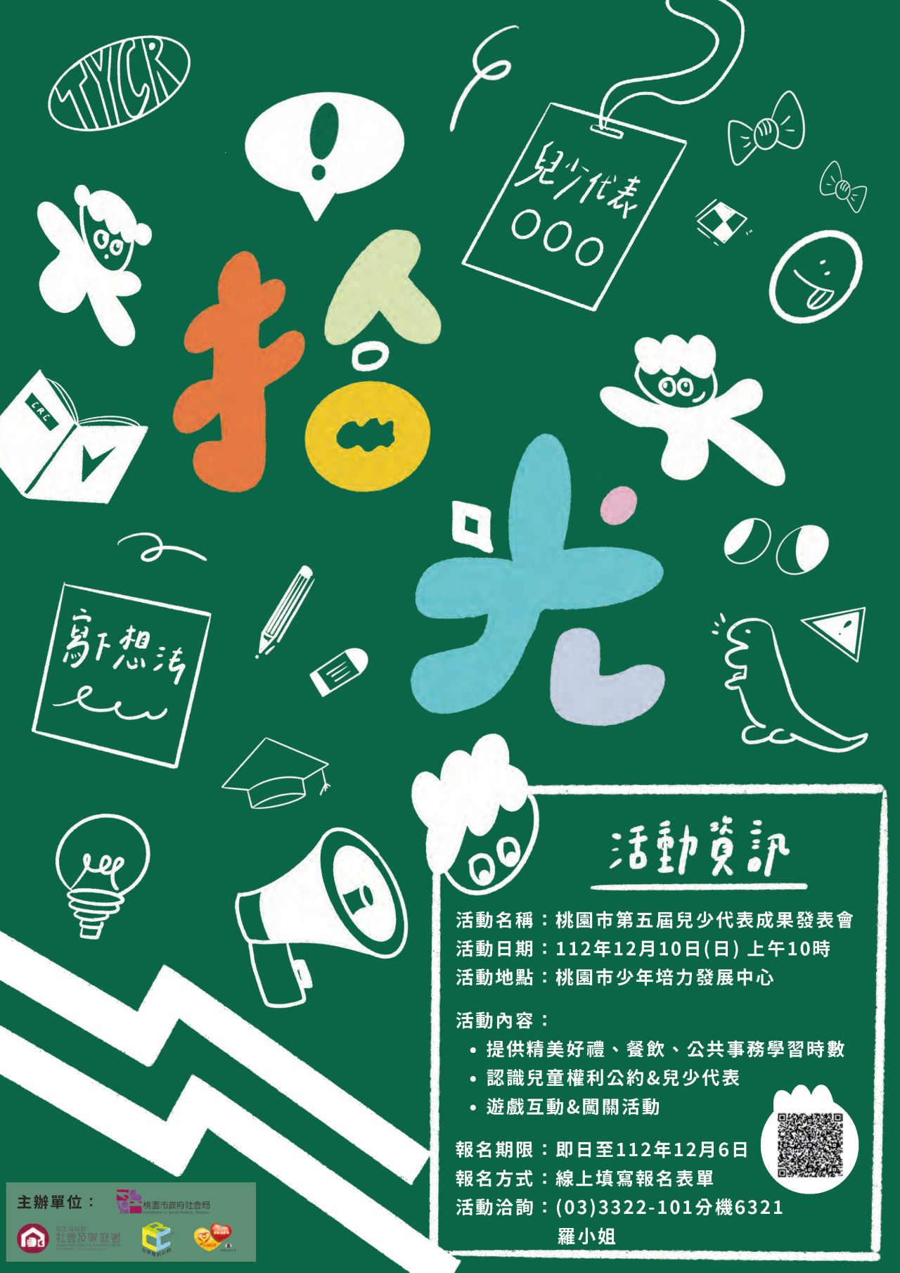 壹、主旨:拾光-桃園市第五屆兒少代表成果發表會。