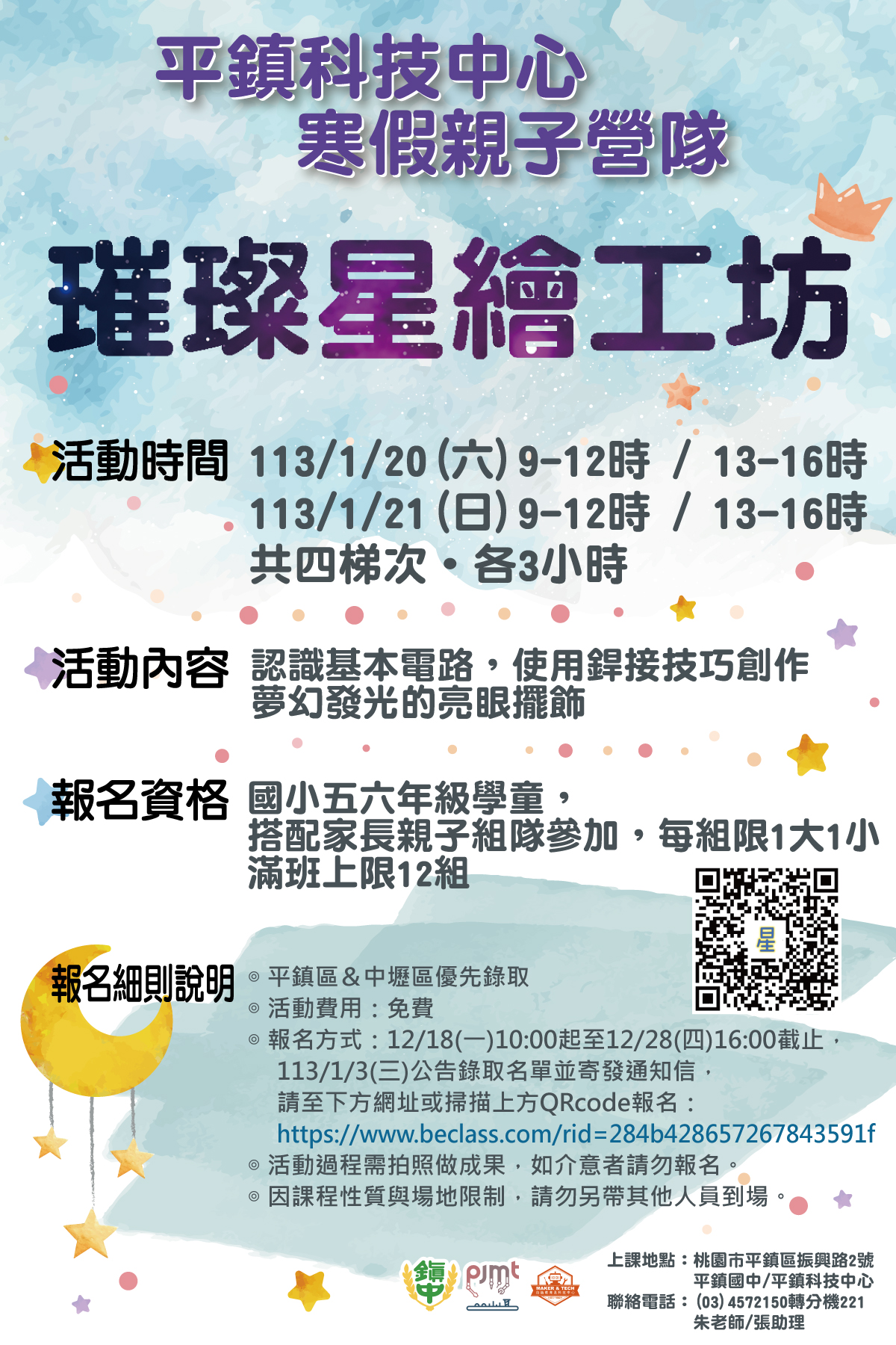 | 八、 | 錄取公告:1月3日(週三)16時前公告於平鎮國中官網與本中心粉絲專頁。 |