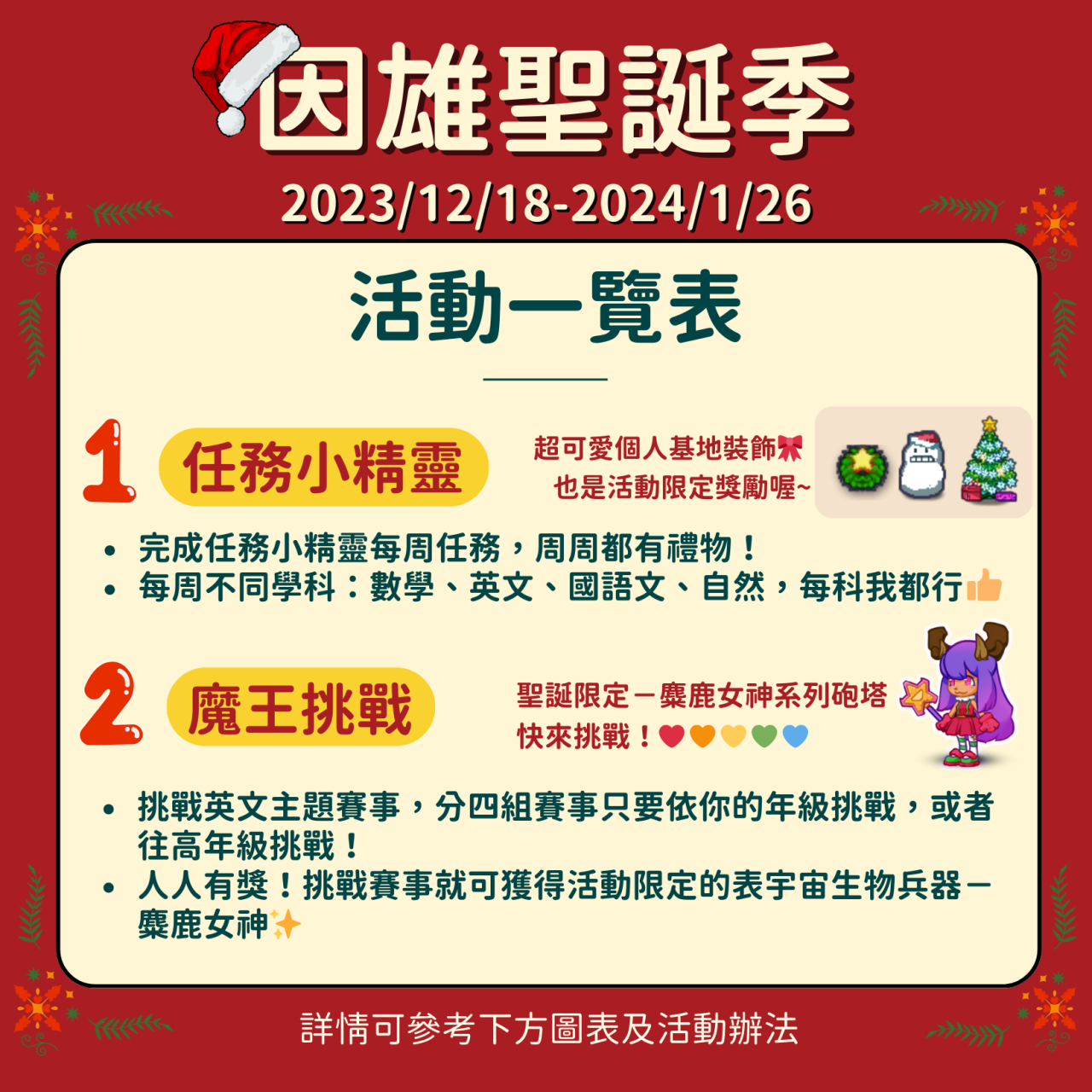 二、 旨揭活動自即日起至113年1月26日止,每日上午7時至下午10時,歡迎全國師生踴躍參加。