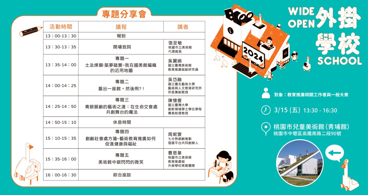 (二)地點:桃園市兒童美術館青埔館1F國際演講廳(320桃園 市中壢區高鐵南路二段90號)