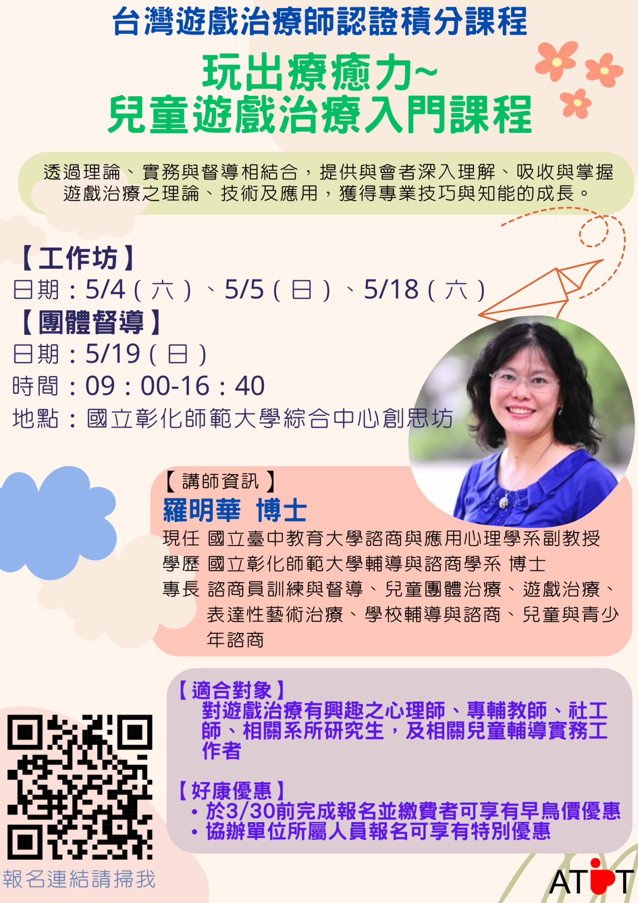 一、 2024台灣遊戲治療師認證積分課程~玩出療癒力~兒童遊戲治療入門課程活動及時間。
