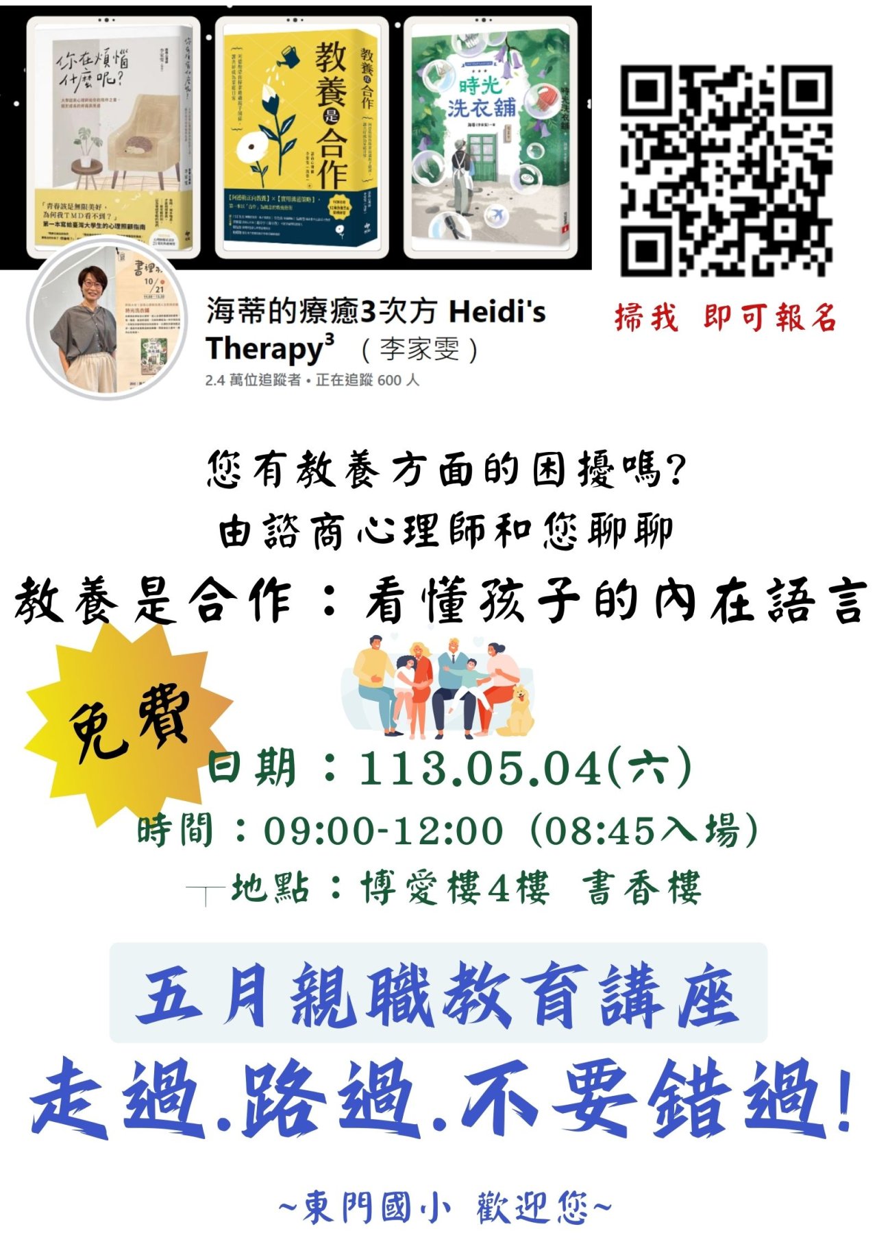 | (四) | 主題:教養是合作:看懂孩子的內在語言。 |