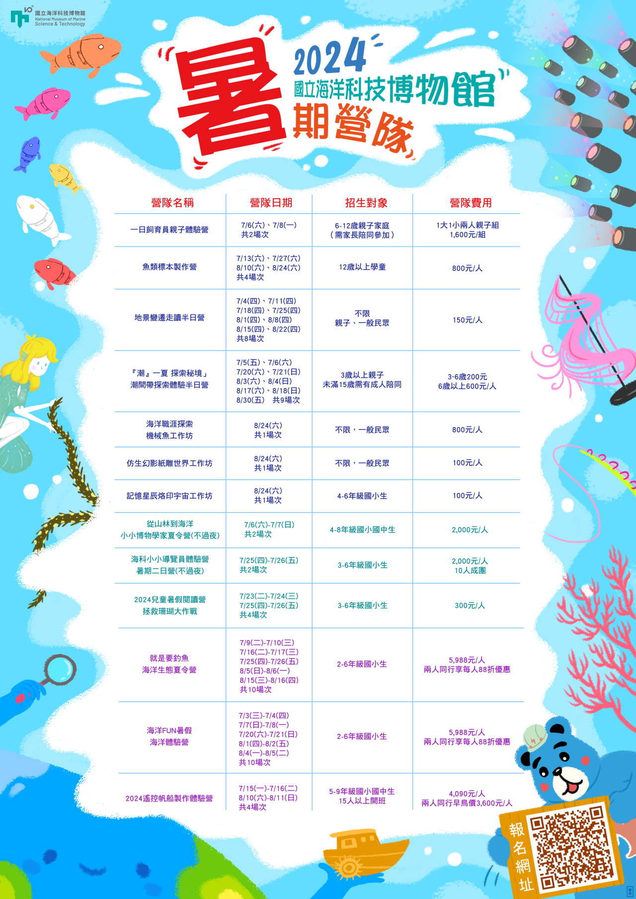 壹、主旨:國立海洋科技博物館「2024國立海洋科技博物館暑期營隊」系列活動。