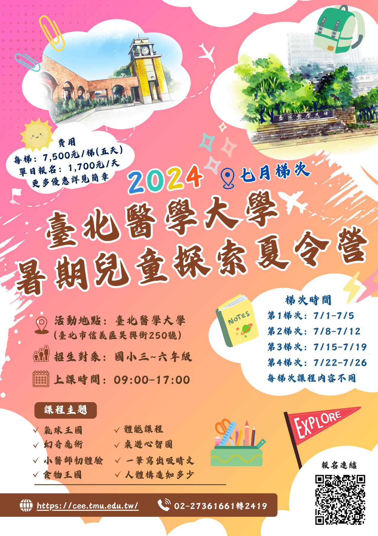 壹、主旨:臺北醫學大學辦理「2024臺北醫學大學暑期兒童探索夏令 營(7~8月)」。
