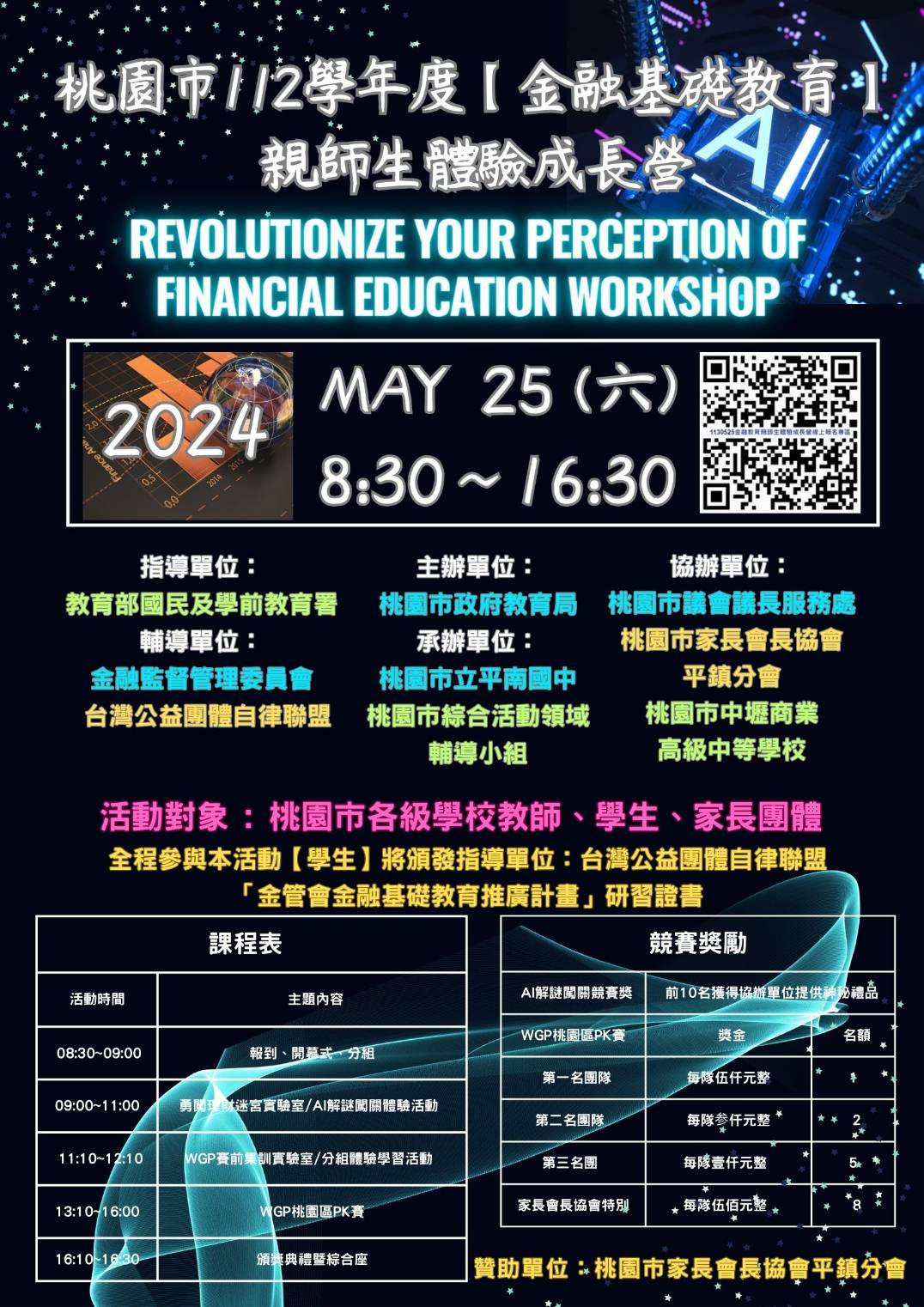 一、依據桃園市立平南國民中學113年5月1日平國教字第 1130003022號函及「桃園市112學年度高級中等以下學校金 融基礎教育融入教學精進推廣計畫」辦理。