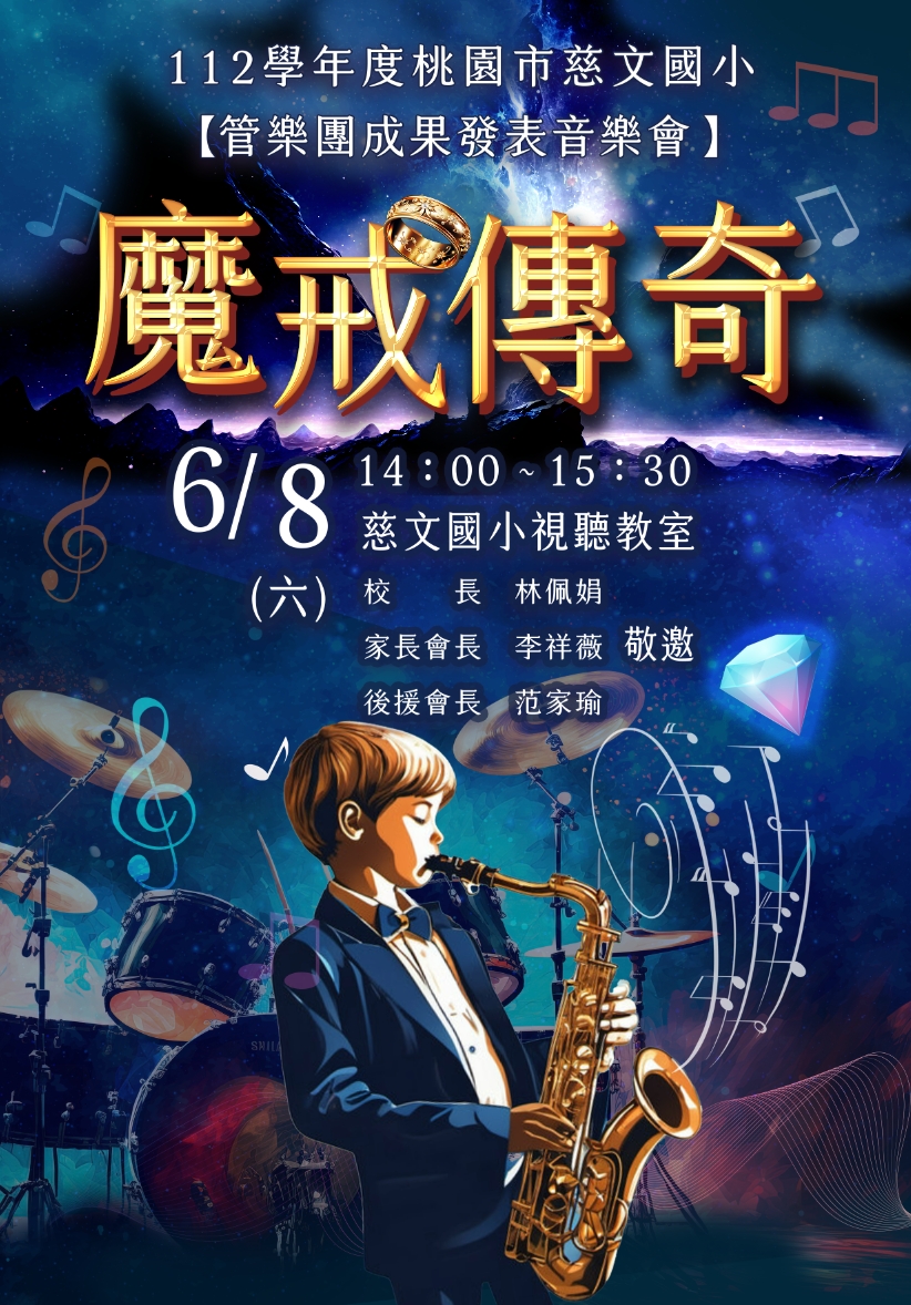 一、主旨:敬邀觀賞6/8(六)112學年度慈文國小【管樂團成果發表音樂會】