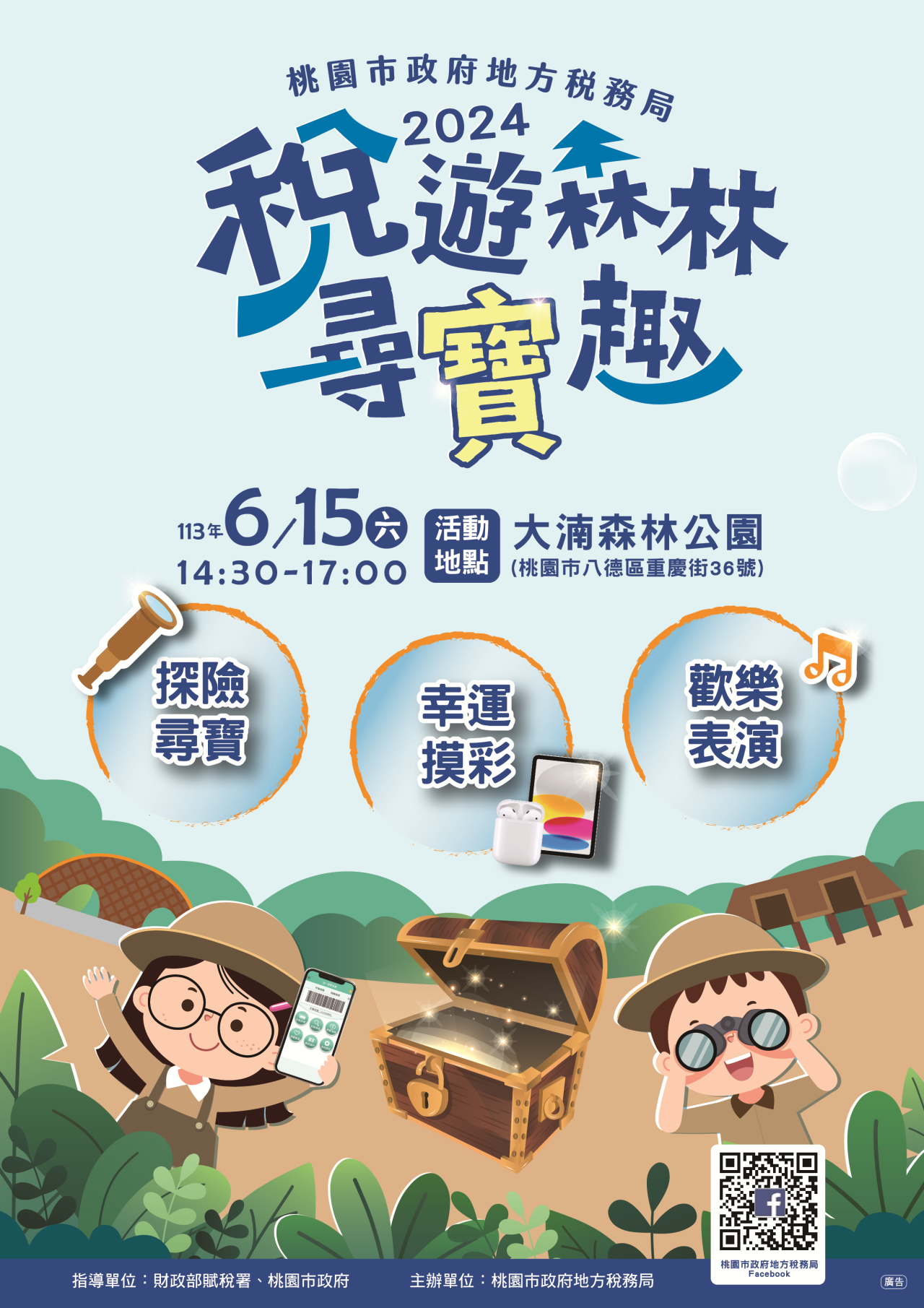 壹、主旨:桃園市政府地方稅務局113年「稅遊森林尋寶趣」租稅宣導活動,鼓勵師生及家長踴躍參加。