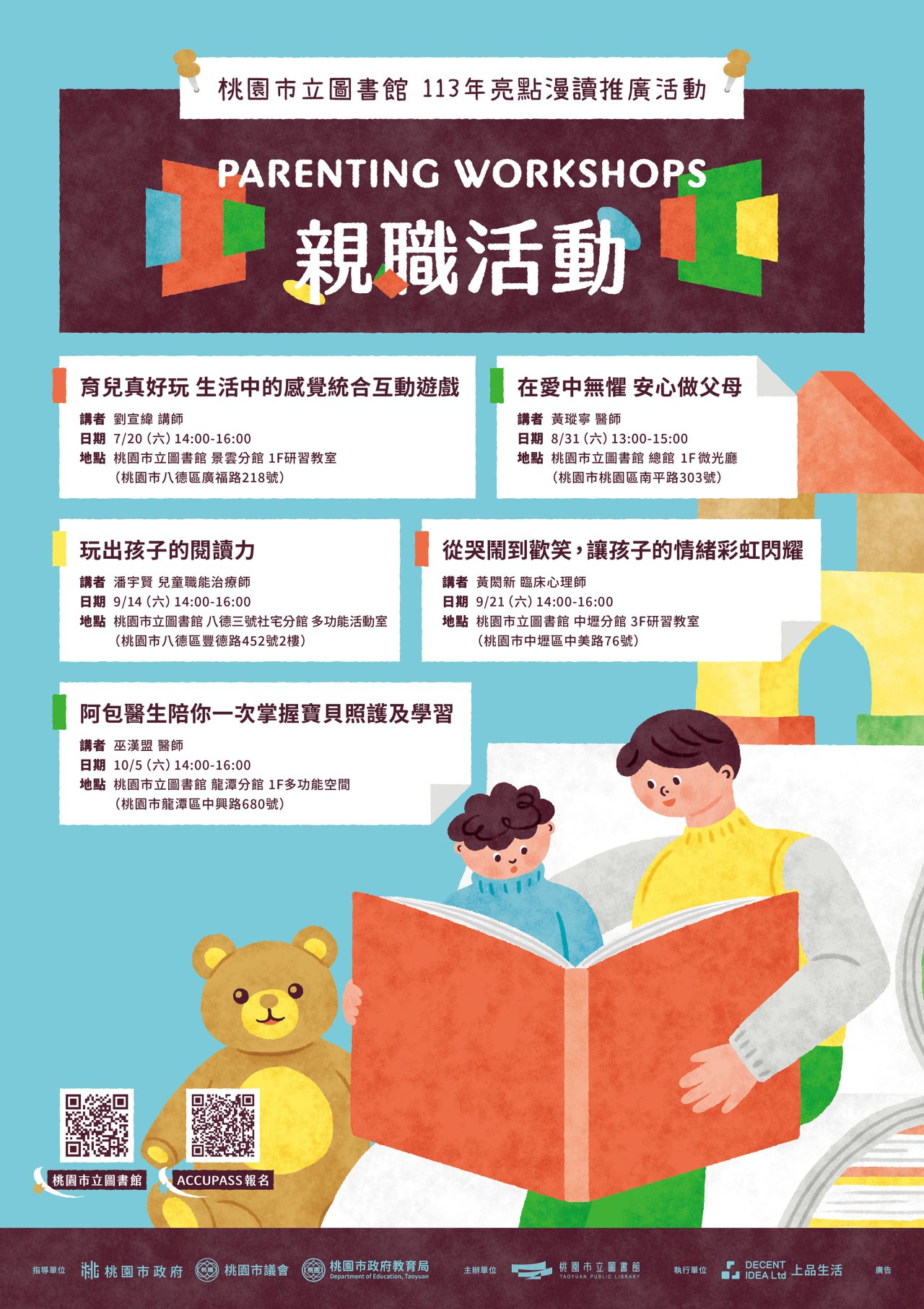 轉知桃園市立圖書館「亮點漫讀-穿梭閱圖間Reading Travel」系列活動海報電子檔,鼓勵所屬同仁及學生踴躍參加,說明如下: