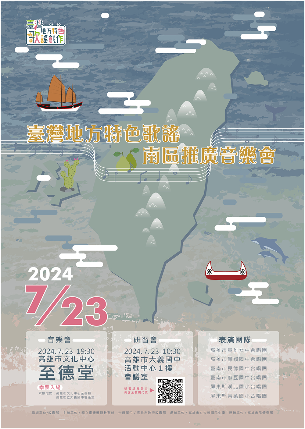 壹、主旨:國立臺灣藝術教育館第3屆「臺灣地方特色歌謠創作 比賽」南區推廣音樂會(含漢詩吟唱)及研習課程活動, 敬請踴躍參加。