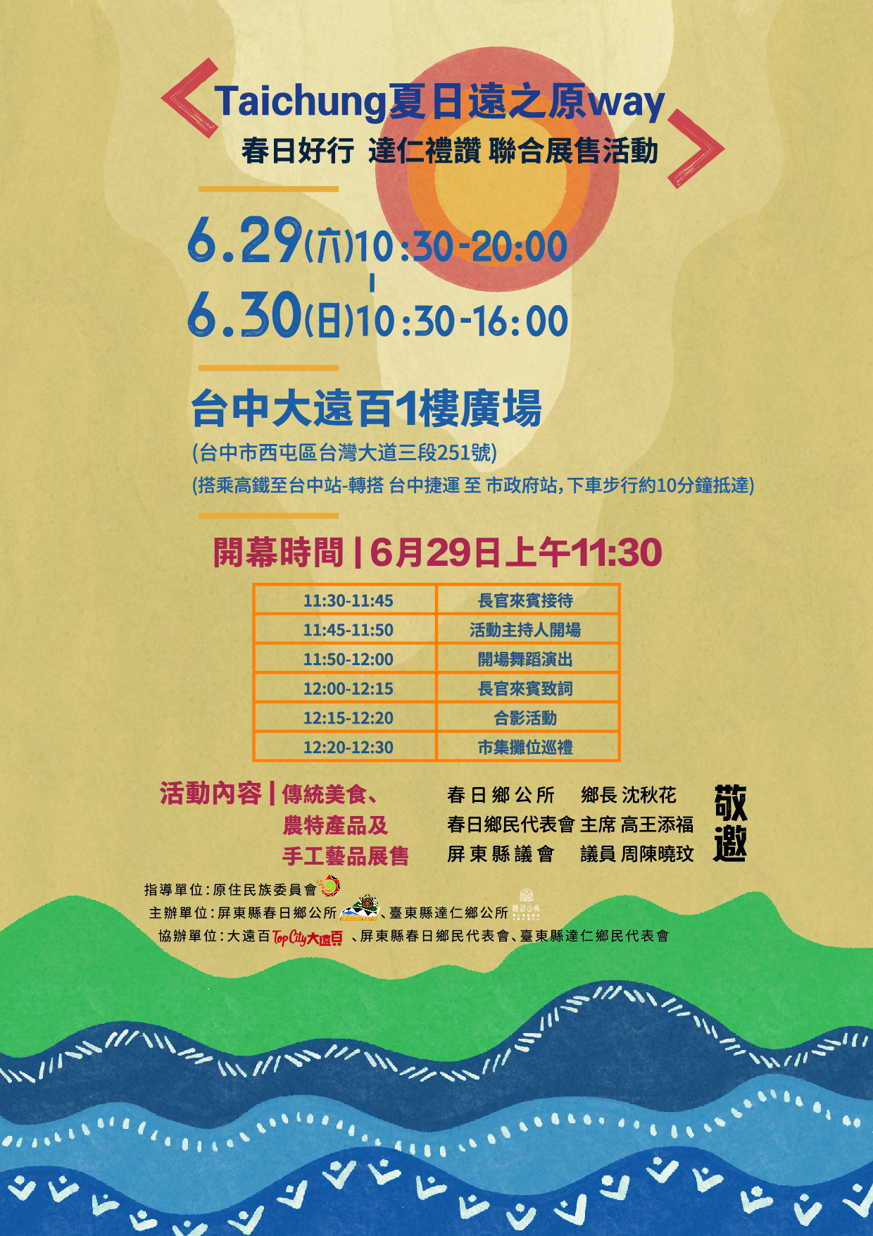 壹、主旨:屏東縣春日鄉公所「Taichung夏日遠之原way-春日好 行×達仁禮讚聯合展售市集」