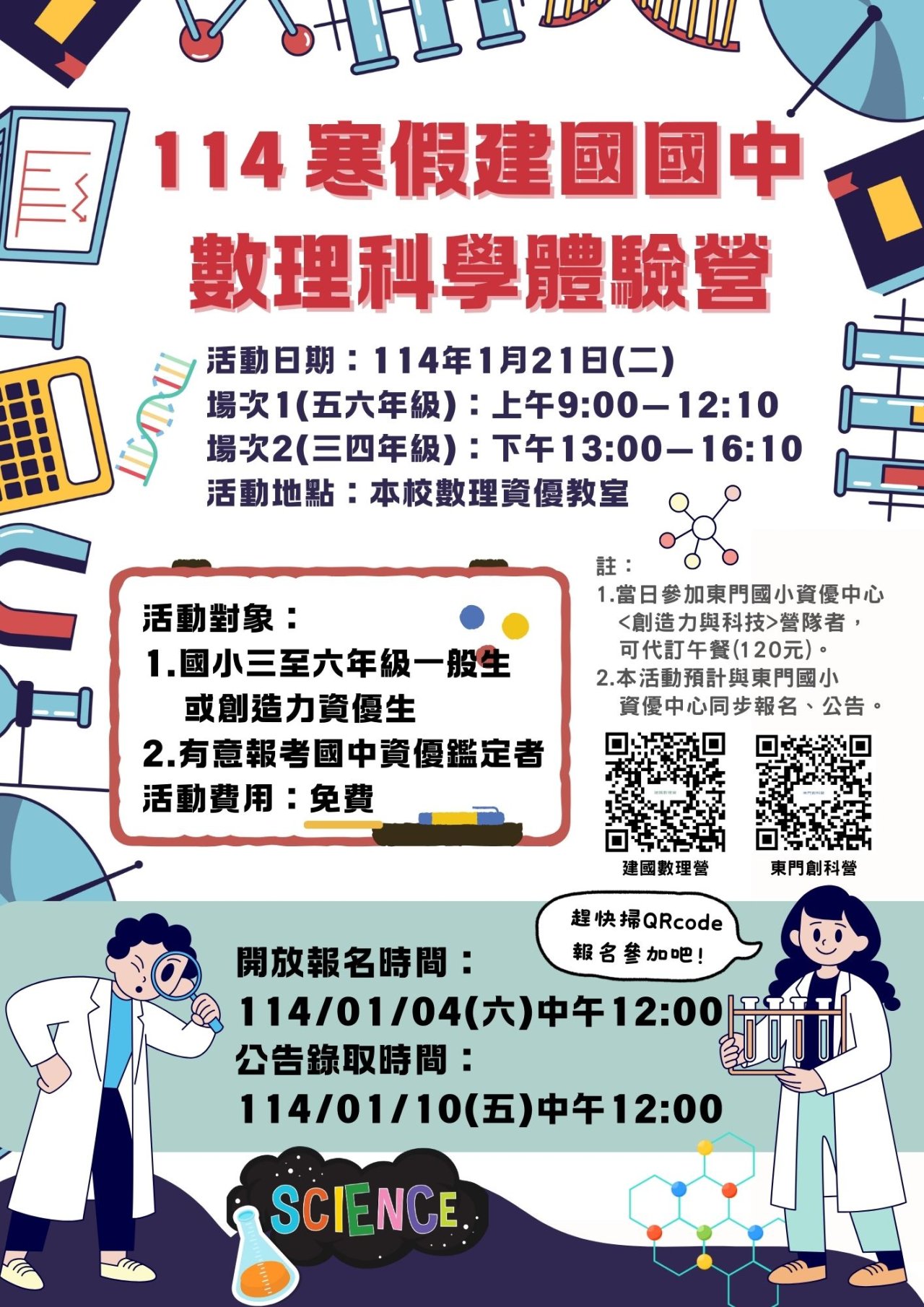 | 3、 | 錄取名單於1月10日(五)12:00公告於建國國中網頁、粉絲頁。 |