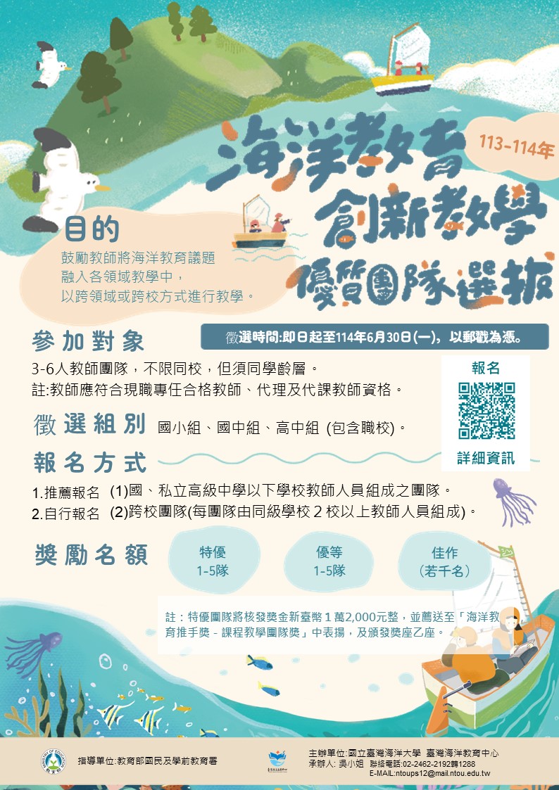 依據國立臺灣海洋大學114年2月7日海洋教育字第1140002222號函辦理。 |