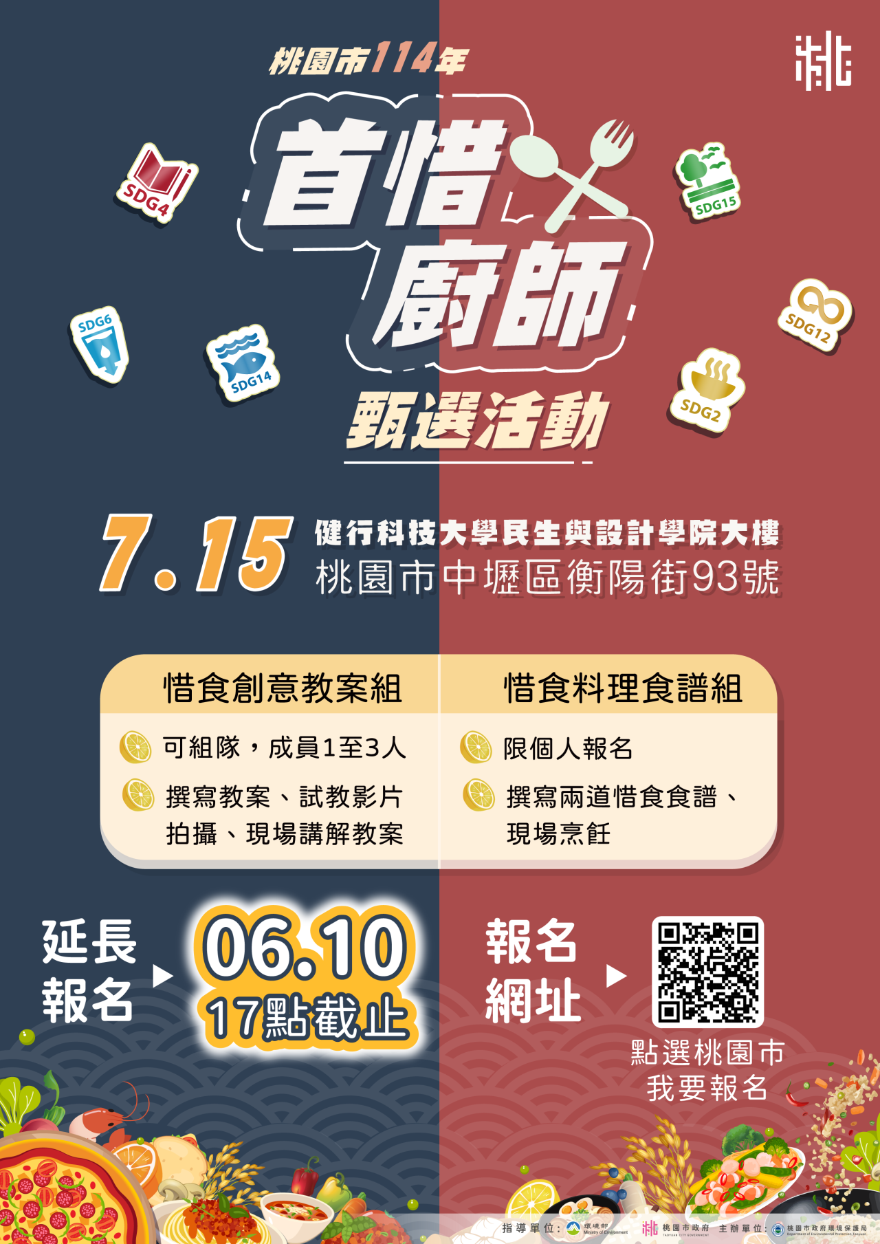 1、 網路報名網址:於收件截止日114年6月10日(二)17點前至https://www.cherishfood.com.tw/join_index.php,點選桃園市報名。