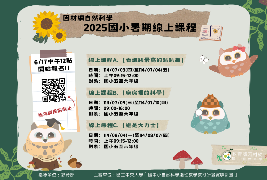 | 2、 | 課程B.【廚房裡的科學】(課程日期為114年7月9日至7月10日)。 |