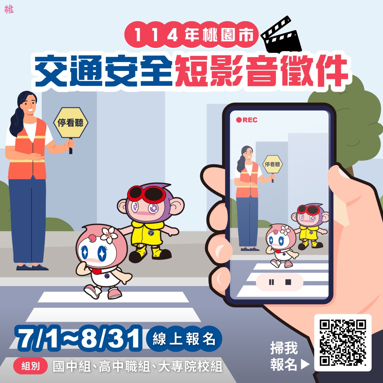 桃園市交通安全短影音徵件活動至 8/31,詳情請見市府官網熱門活動。
