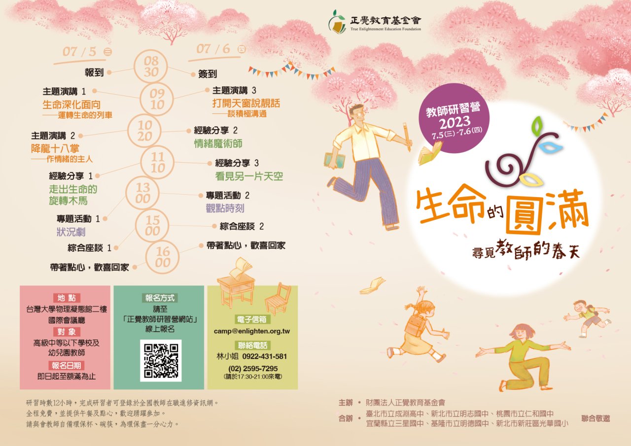 | 三、 | 本校與財團法人正覺教育基金會合辦2023年生命教育「生命的圓滿—尋覓教師的春天」教師研習活動,規劃如下: |