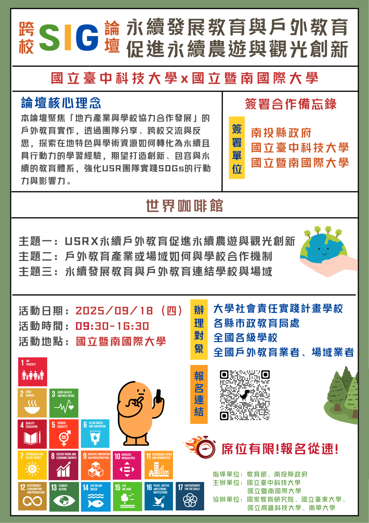 | 一、 | 依據國立臺中科技大學114年8月25日中科大秘永續字第1140016687號函辦理。 |