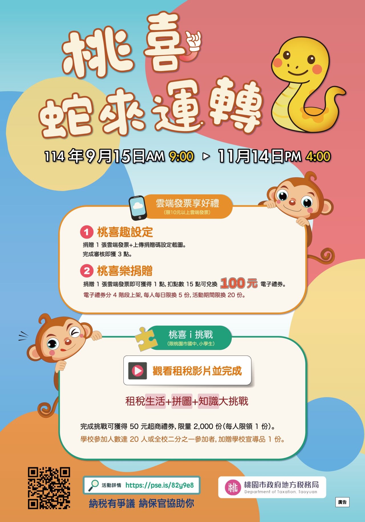 114年「桃喜蛇來運轉」網路活動,鼓勵學生及教職員踴躍參加。