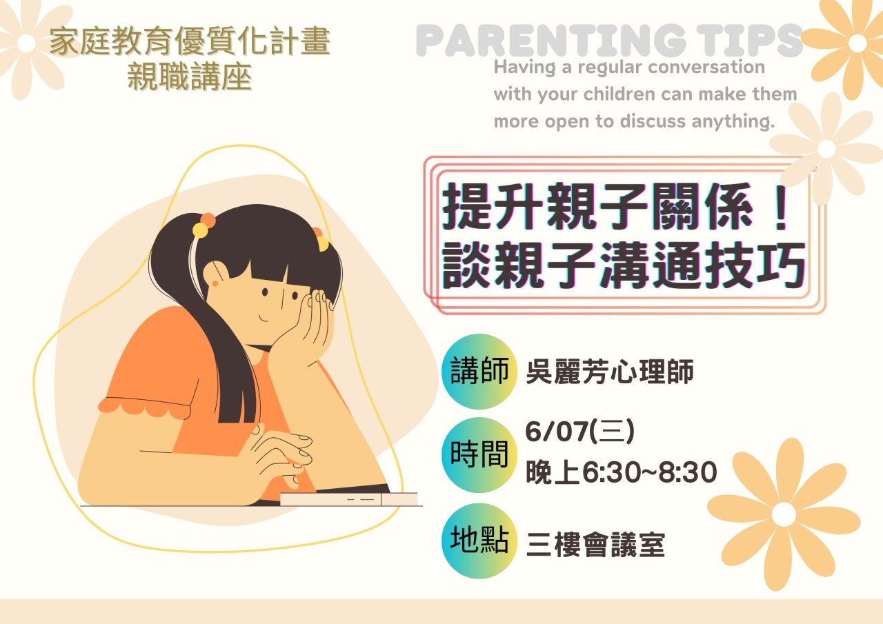 | 四、 | 講題:提升親子關係!談親子溝通技巧。 |