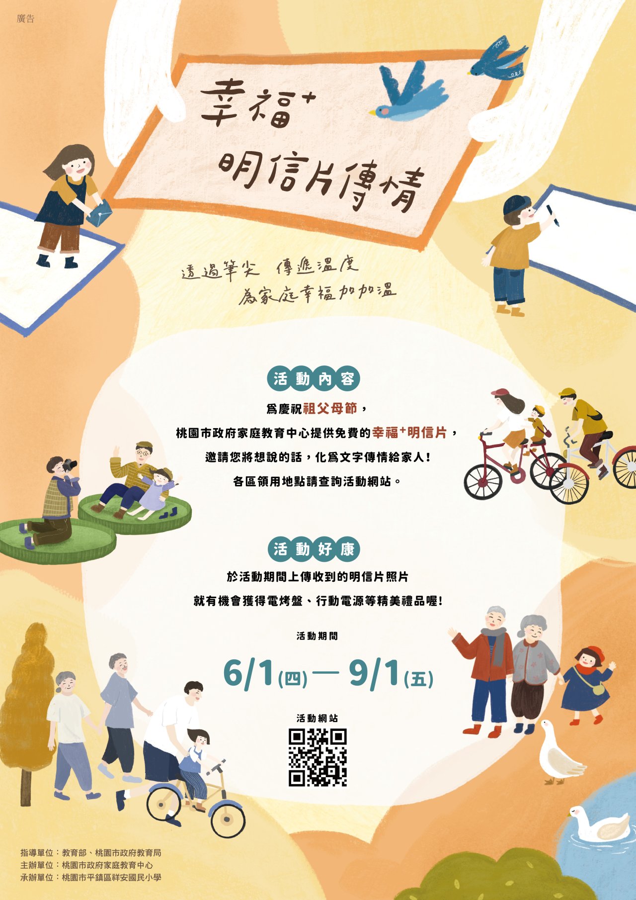 壹、主旨:桃園市政府家庭教育中心112年「幸福+明信片傳情活動」。