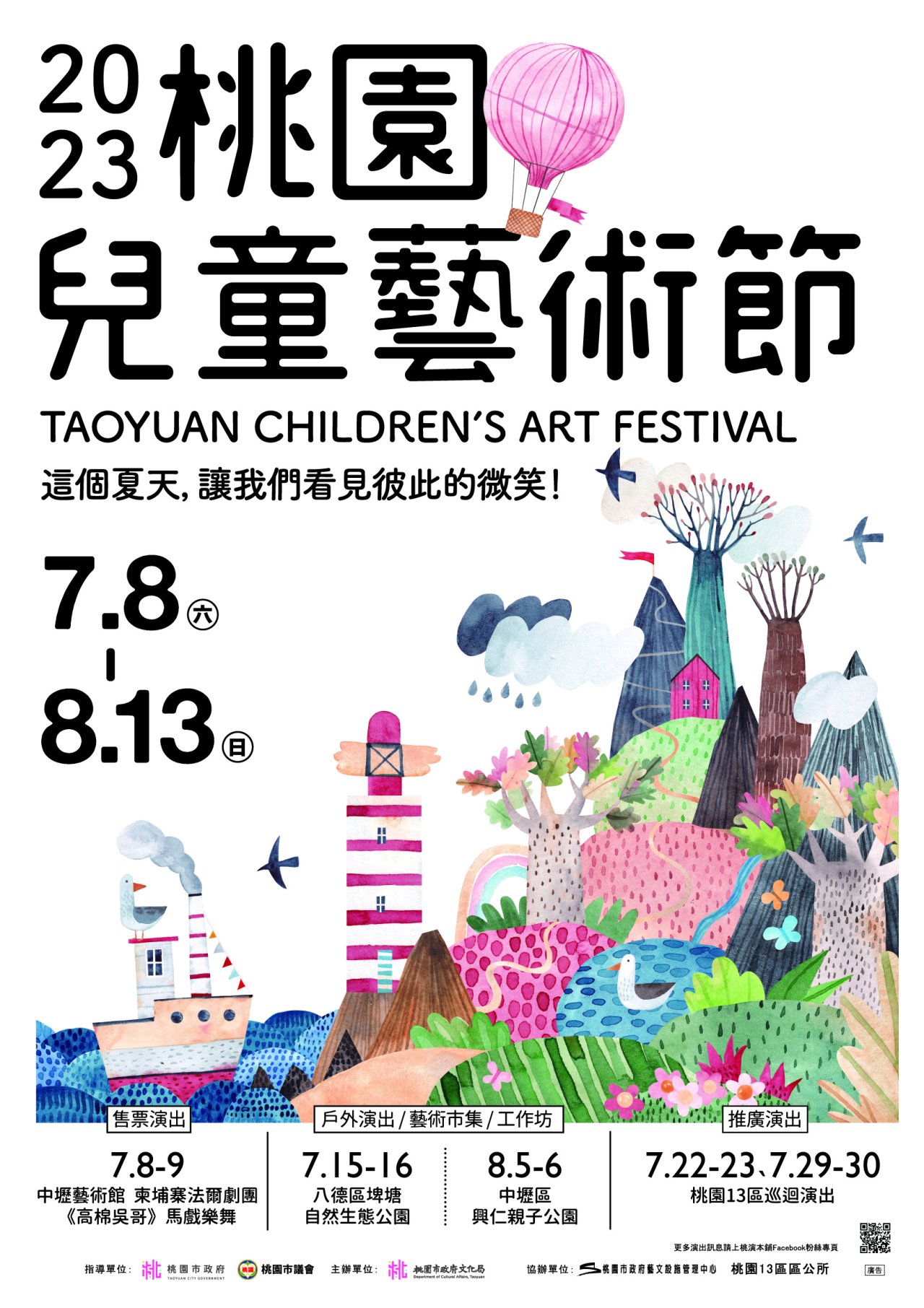 一、本局為推廣兒童藝術啟蒙與在地藝文紮根,規劃辦理 「2023桃園兒童藝術節」,活動內容包含劇場售票親子節 目、戶外親子演出及兒童市集活動、13區推廣演出、在地 藝文好戲等,於112年7月8日(六)至8月13日(日)於桃園多 區辦理。